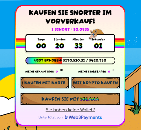 Nun besucht man die offizielle Presale-Website von Snorter und klickt auf den Button “Wallet verbinden”. Anschließend kann man die gewünschte Kryptowährung als Zahlungsmethode sowie die Menge der zu kaufenden Snorter Tokens auswählen.